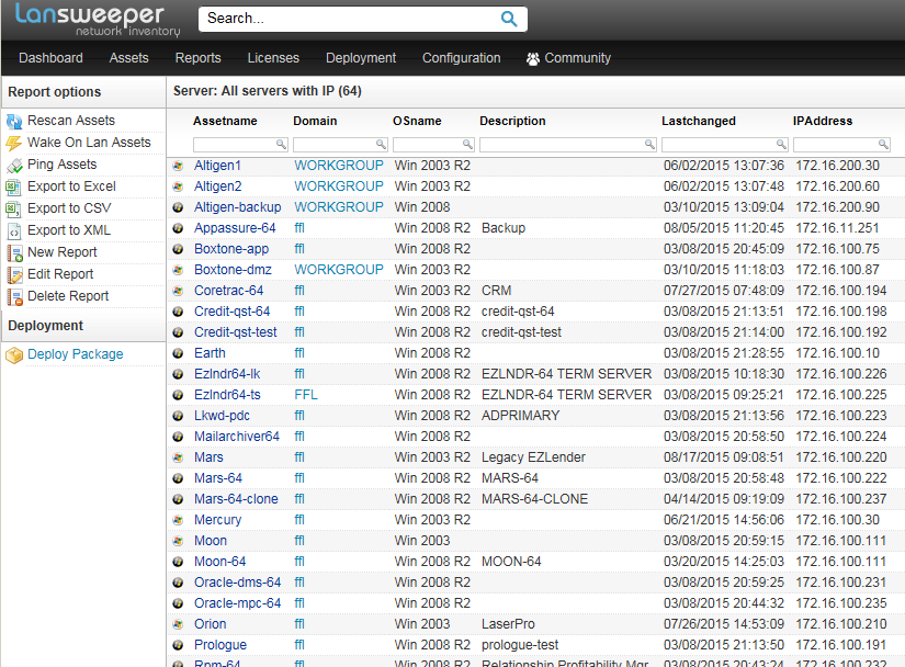 MattF created a Lansweeper report that lists all servers and their IP addresses. It comes in handy as a quick reference for used and available server IP addresses. (Direct link: http://wclels02:81/Report/report.aspx?det=web50repf02f94cce6964ffca29ff98a5b4f776e&title=Server%3a+All+servers+with+IP)