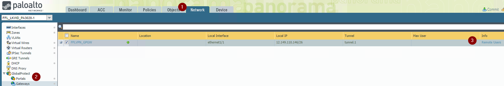3. Navigate to the Network tab --> GlobalProtect --> Gateways --> Remote Users