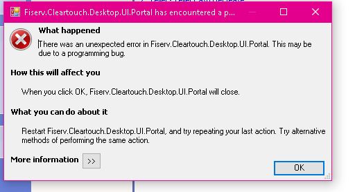Branches may receive the following error and have CT crash when attempting to close batches. This may be due to the above issue occurring at the same time the teller was in the middle of an open batch, but the message should clear itself up by the next business day. It will not affect the branch's ability to balance for the day.