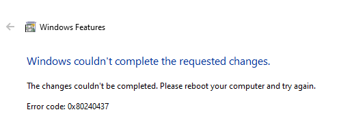 This can be fixed by copying over the Win10 ISO cab files to the local machine, then use a DISM command: