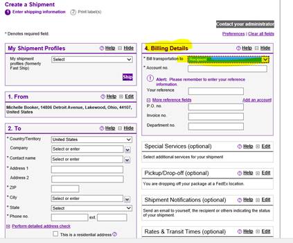 Michelle Booker in General Services can set up users (including the IT Service Desk) with FedEx accounts to be able to create shipments for sending out equipment to employees and the affiliates.