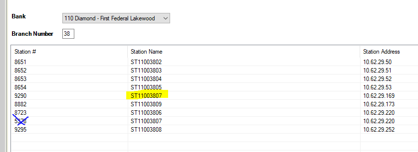 This may be an indication of two workstations with the same workstation ID/name, and the wrong one got registered. There are still some "old" workstations in the list that were used from the previous core/teller system.