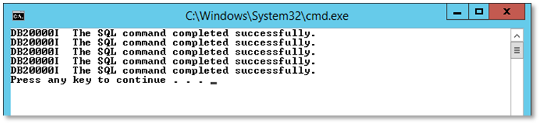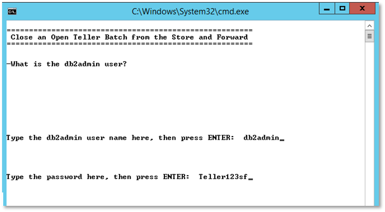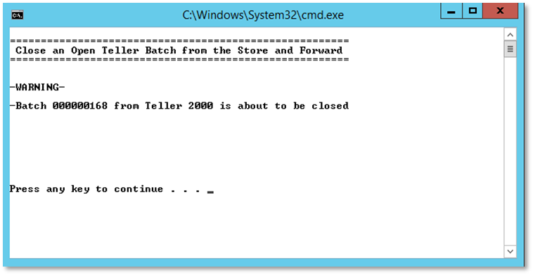 - If Successful, you will see 5 instances of The SQL Command completed successfully. After you press any key, it will ask if you need to close any other batches. If you hit y, it will restart the process of selecting Batch IDs and Teller Numbers. If you hit n, it will start the Apache-SF Service and close. If it was NOT successful, try again and use the AuxBatchID number in Step #3 if you had used the Teller Number originally.