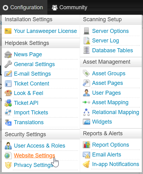 You have now granted Read Only access to the user within Lansweeper. However, the user will still not be able to reach the Lansweeper webpage when you provide them the link. To give them access to open the webpage via http://lansweeper:81/Default.aspx, go back to Configuration --> Website Settings: