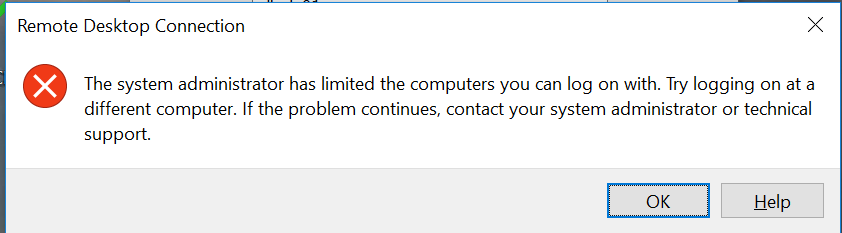 - The Service Desk account is login limited. Any machine you would like to RDP FROM (not TO - i.e. your own computer) using ffl\servicedesk will need to be added to a specific attribute in AD. AD Users & Computers: FFL --> AppLogins --> Service Desk --> Attribute Editor --> userWorkstations: (add computer/server name). If you don't do this, you may encounter the error message below: