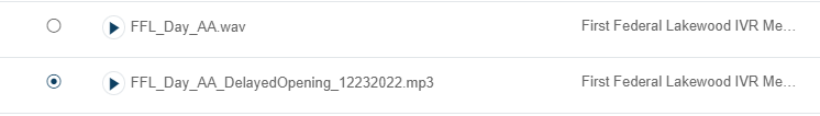- Option A: Download the bank's regular main greeting from the AT&T Office@Hand admin portal (Phone System --> Auto Receptionist --> Prompts Library). For First Federal Lakewood, it is titled FFL_Day_AA.wav. Once both the FFL_Day_AA and inclement weather notice recordings have been downloaded, you can use Clideo to join/merge the two audio files (i.e. put the special notice first before playing the regular main greeting): https://clideo.com/merge-audio Download the combined audio file and upload to the Prompts Library in AT&T.