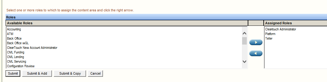 - Each Content Area is assigned to specific roles. Update as necessary: