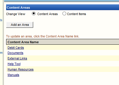 - If you need to add/remove a specific item from a specific section of the CTHP, select the appropriate Content Area Name, make your changes, then click Submit