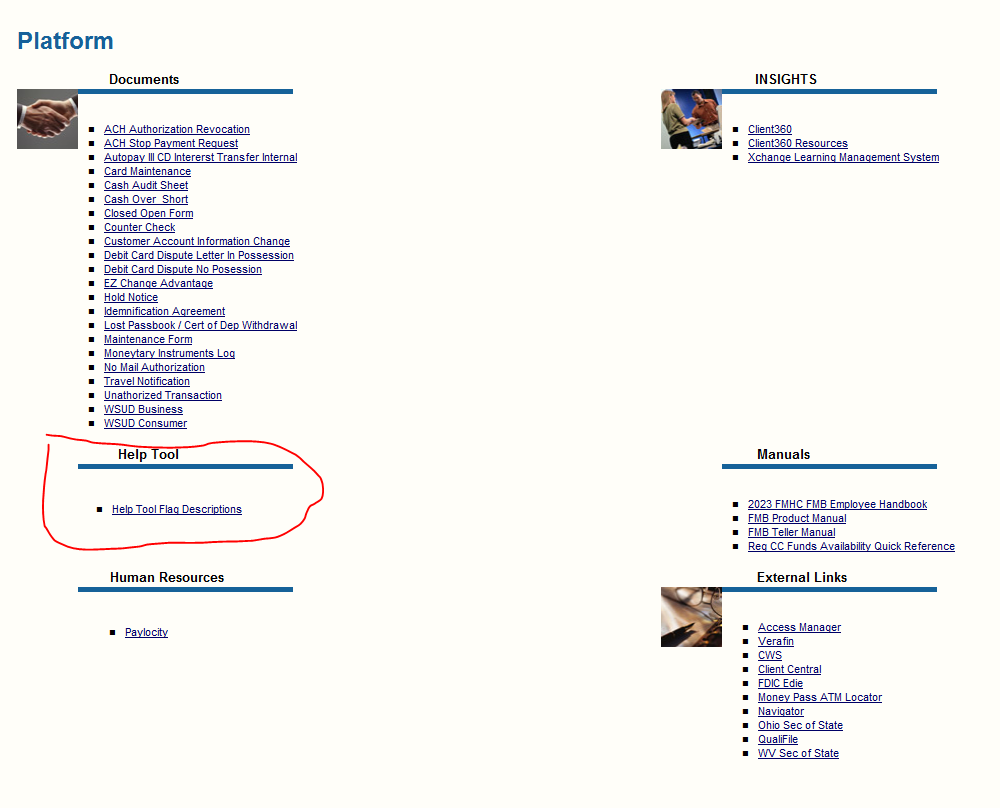 Like the intranet site, there are many links and documents posted directly on the Cleartouch Home Page (hereafter "CTHP"), which is what every user sees when they first log into Cleartouch. Different sections will appear based on the user's role and permissions.