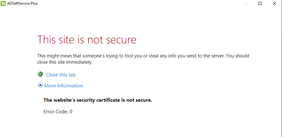 If the main URL to log into ADSelfService Plus changes (due to an updated site security certificate or other reason), some users may encounter the message below when attempting to self-unlock their account: