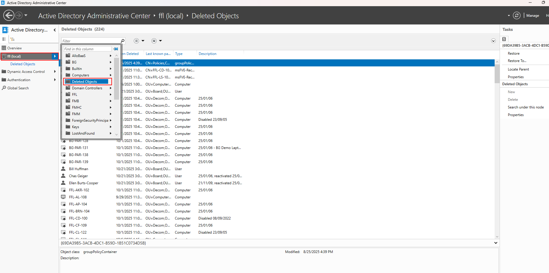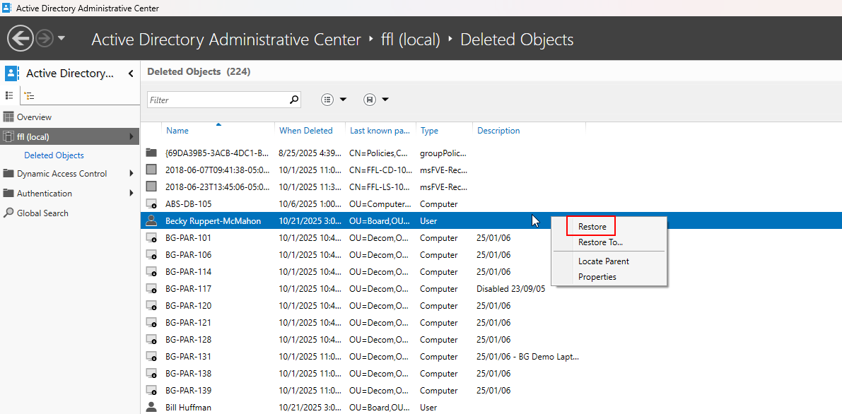 Restore a User or Computer in Active Directory (Fix for deleting user on accident)